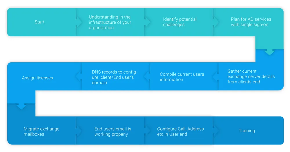 - Infrastructure Readiness Assessment: Evaluation of existing systems, including Exchange servers, Active Directory, and network configurations.
