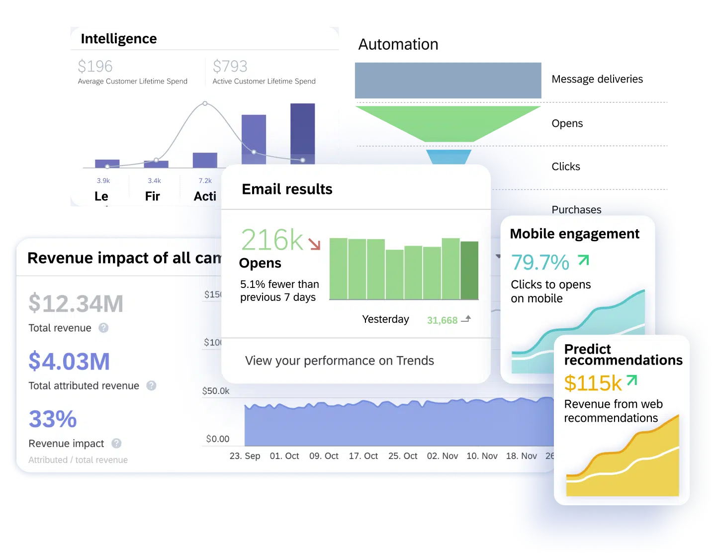 Prove the revenue contribution of your campaign personalization efforts with a dedicated Strategic Dashboard. Track campaign performance down to specific lifecycle stages and customer segments, and leverage AI-powered insights and analytics for more insightful business decisions.