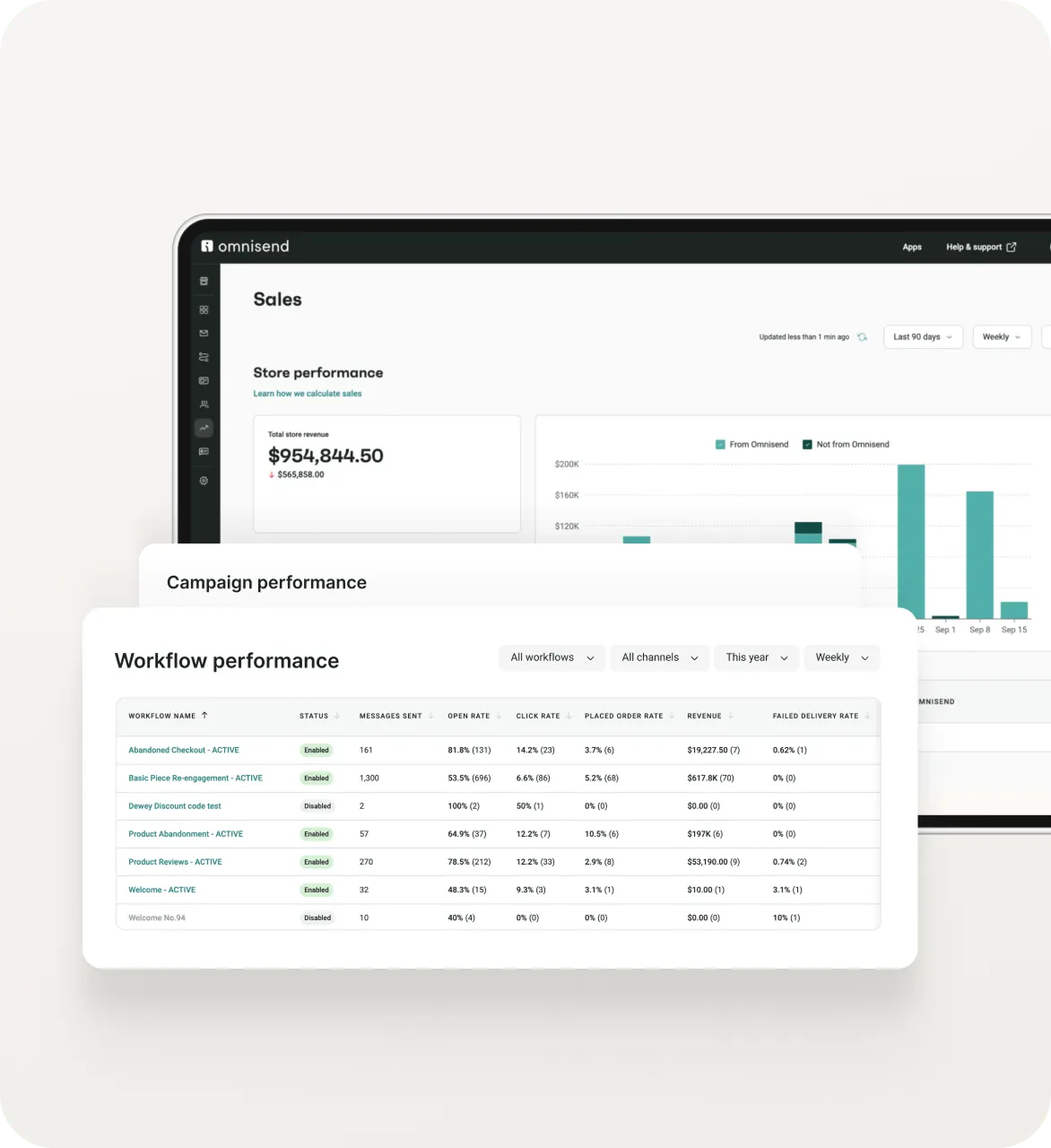 - Advanced analytics for campaign performance, deliverability, conversions, and revenue attribution.