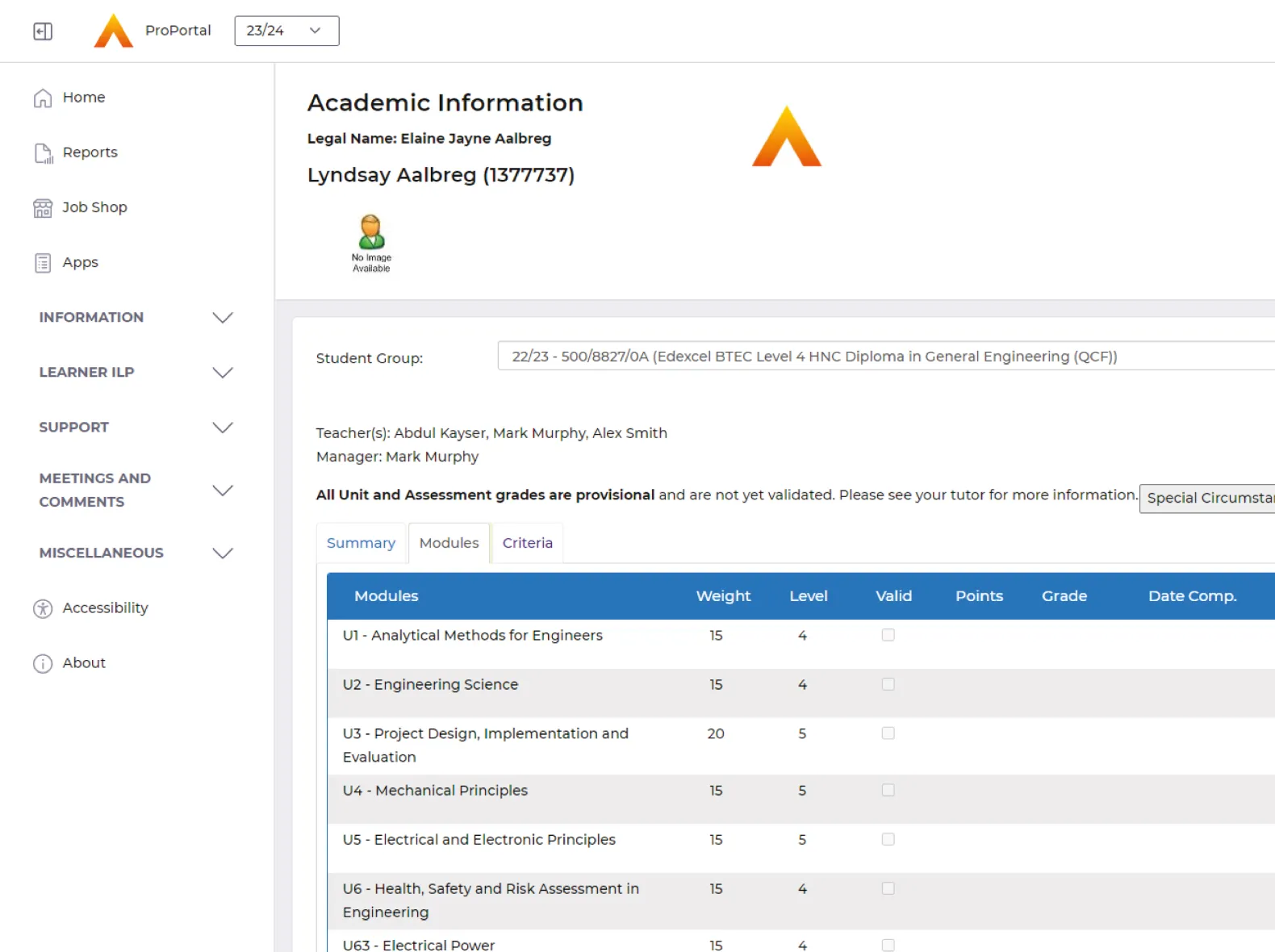 ProMonitor. Track students and record their progress against target grades in a transparent and flexible markbook solution. Build ILPs, log hours, upload evidence and utilise progression data to improve outcomes.