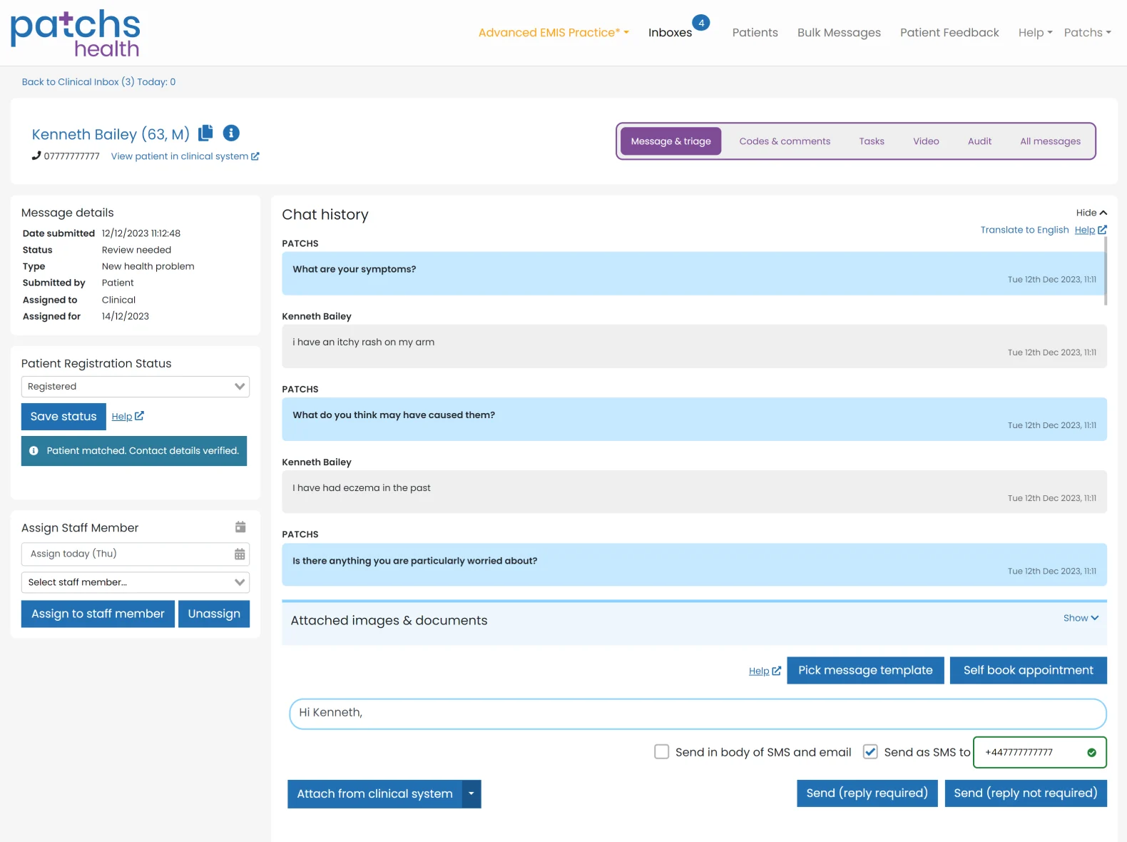 - Bulk and ad hoc two-way patient messaging including attachments