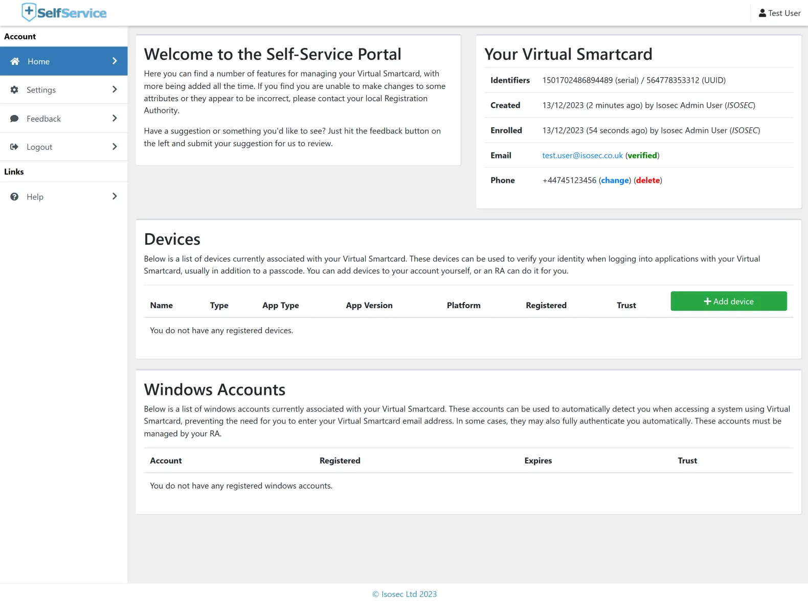A Virtual Smartcard user can enrol and manage their virtual smartcard via a self-service portal.