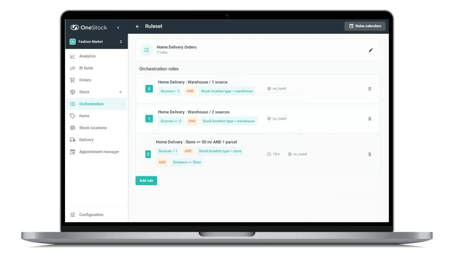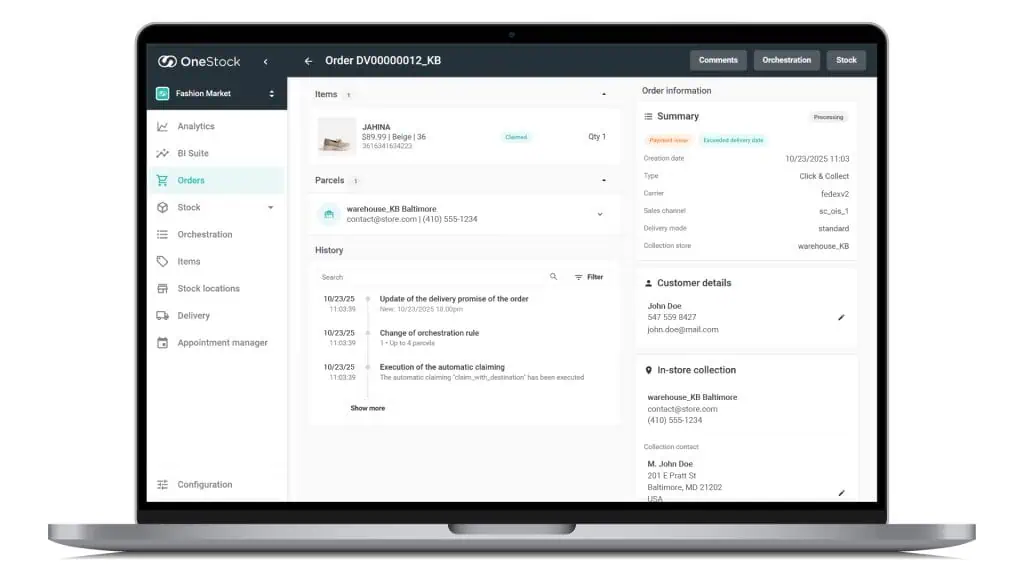 - Order Orchestrator: Automates order allocation, fulfillment, tracking, and communication to the best stock point.