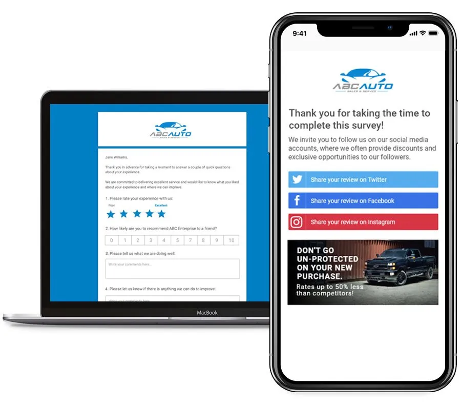 - **Customer Surveys & Review Generation: **Utilize award-winning survey technology to gather actionable customer feedback and encourage positive reviews on top online platforms.