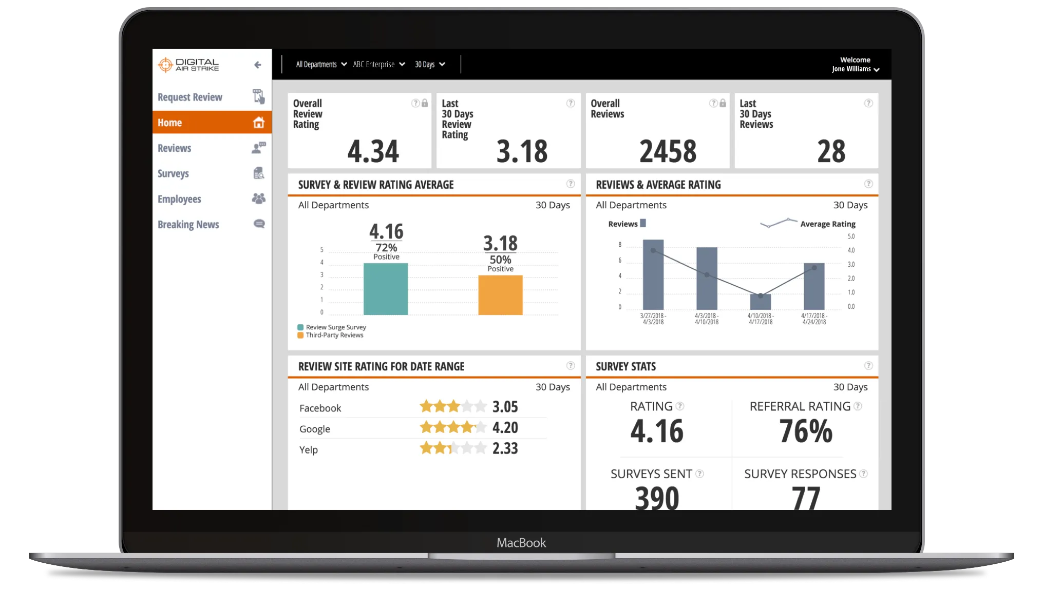 Boost your online reputation with Digital Air Strike's expert review management and survey tools.
