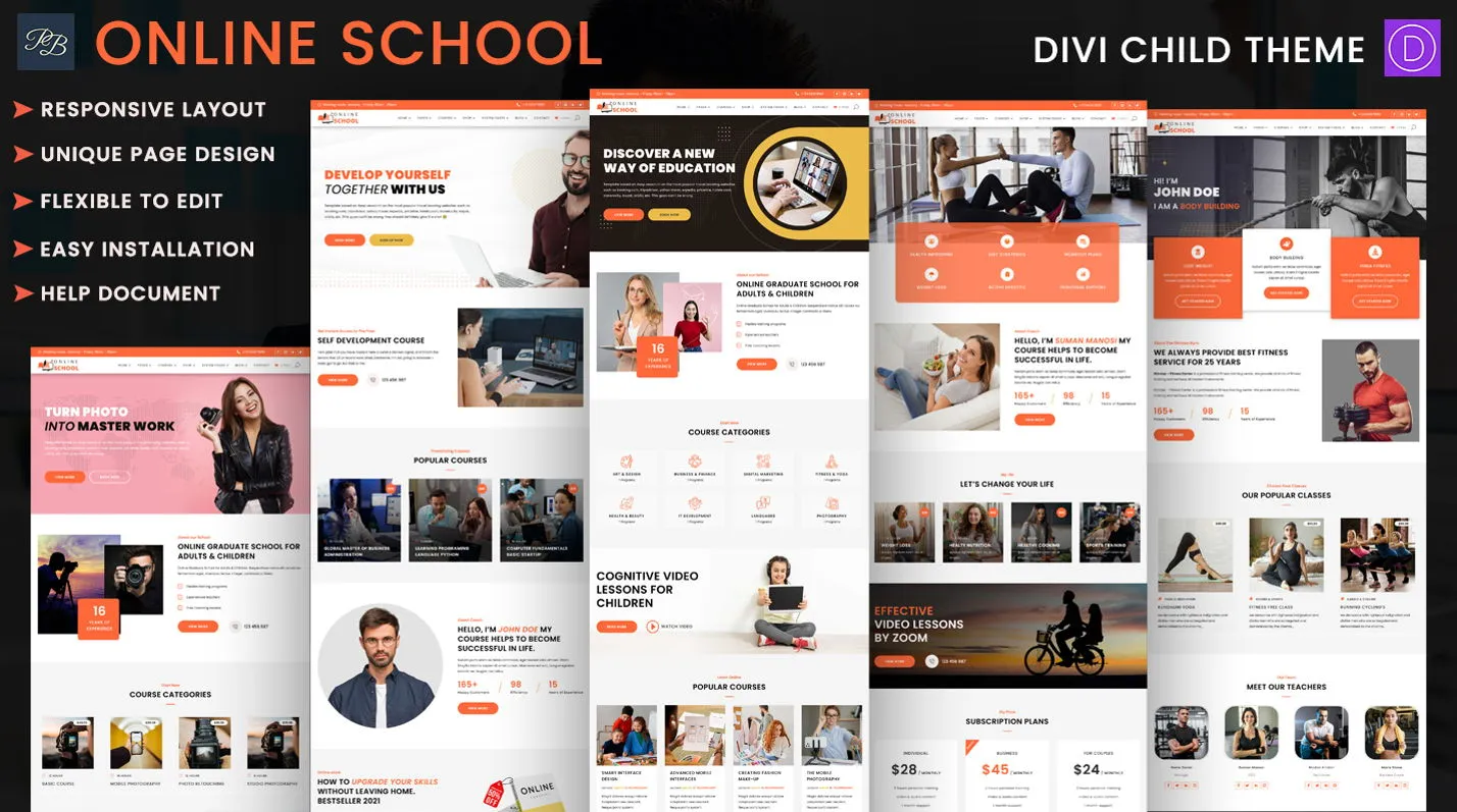 Online School is modern and elegant Multi Page Divi Child Theme which is suitable for education, school, college, nursery, play school, preschool, kindergarden, tutorial center, coaching center, online education, online classes, online courses, online teaching, online coaching, teacher, teaching, learning, e-learning, e-teaching, kindergarten, educational programme and general categories.