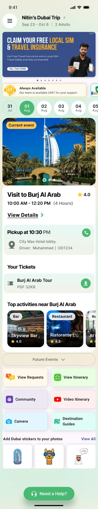 The OnTrip App serves as an ultimate travel companion, designed to make journeys seamless and stress-free. It allows users to manage all their bookings, explore curated destination guides, stay connected, and access round-the-clock support, all within a single application. The app provides day-wise itineraries, stores tickets and vouchers for offline access, and offers real-time driver details with live tracking for hassle-free airport pickups and general travel. Users can benefit from 24/7 chat, call, and on-ground support, ensuring peace of mind regardless of their location. Additionally, OnTrip offers local insights into restaurants, nightlife, and shopping, along with services like free SIM/eSIM cards, foreign exchange assistance, free travel insurance, and a safety center for emergencies. It also includes a currency converter for easy expense management and a community feature for real-time tips, local insights, and connecting with other travelers.