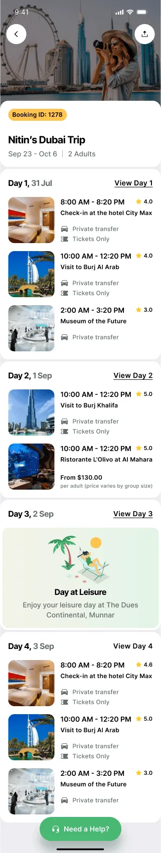 - Itinerary Management: Provides detailed day-wise itineraries for organized trip planning.