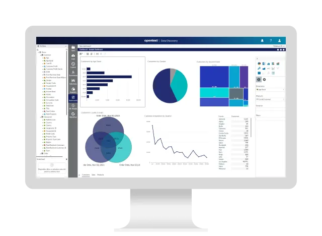 OpenText™ Data Discovery (Magellan) allows business users and analysts to quickly access, blend, explore, and analyze data without a dependence on IT or data experts. With no complex data modeling or coding required, OpenText Data Discovery provides a drag-and-drop user experience to easily obtain a 360-degree enterprise view, explore billions of records in seconds, and apply advanced and predictive analytics techniques.