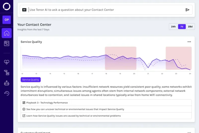 Investigate performance with our breakthrough data copilot powered by Tenor AI™ generative models. Use natural language to interact with and uncover insights in your CX Observability data.