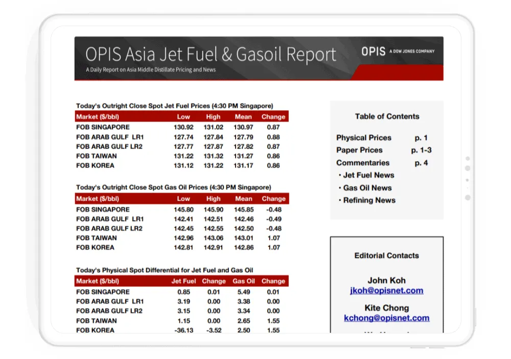 The OPIS Asia Jet Fuel & Gasoil Report provides comprehensive insights into the Asian jet fuel and gasoil markets.