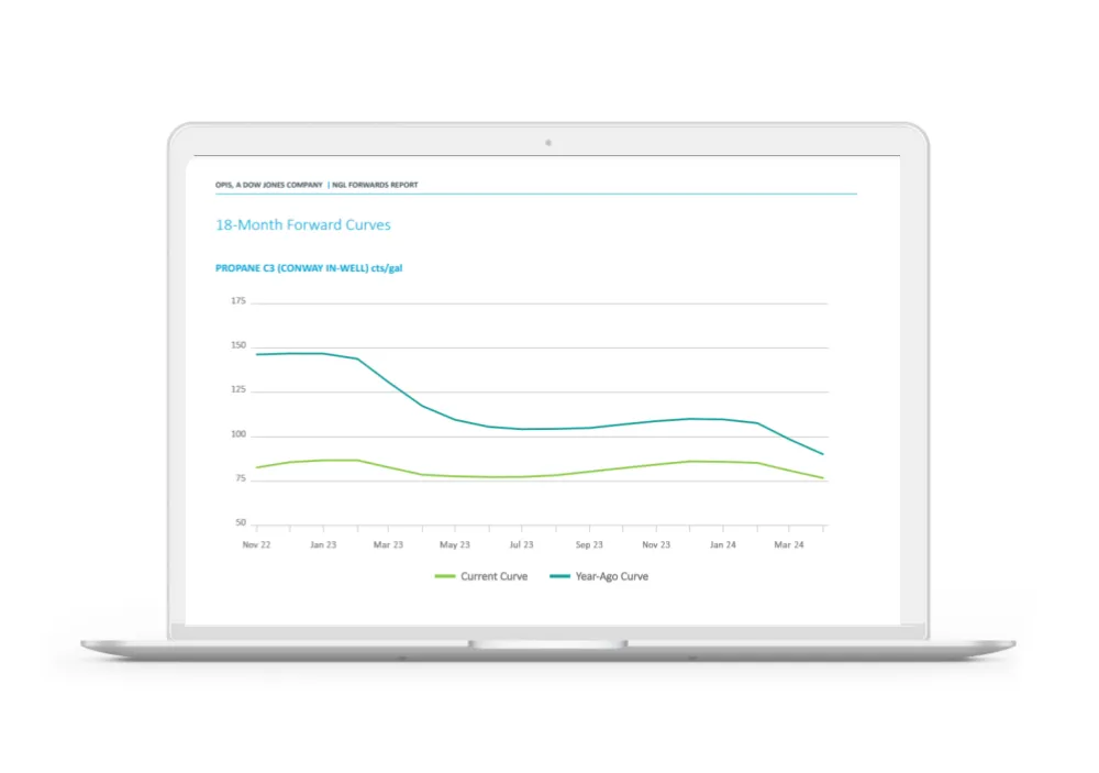 Daily NGL forwards pricing report, providing transparency for propane, ethane, butane, and gasoline prices, plus ethylene cash cost forward curves.