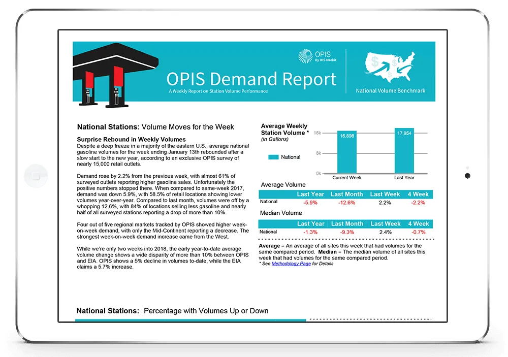 Weekly resource for detailed retail fuel station volume data, providing insights into performance on a national, regional, or state level.