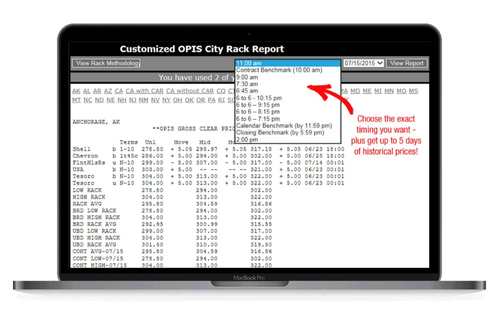 - Select from any of 12 timed updates throughout the day, including 3 OPIS benchmarks.