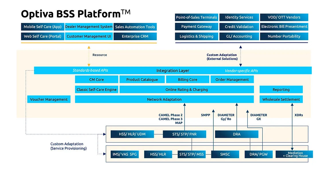With multiple live cloud deployments, Optiva BSS Platform is a proven technology optimized to support small implementations, experiments, and scale to millions of subscribers in any private or public cloud environment. Support for open standard APIs provides easy and fast integration and onboarding for partners. Get real-time access to all functions with the ability to integrate 360° feedback loops.