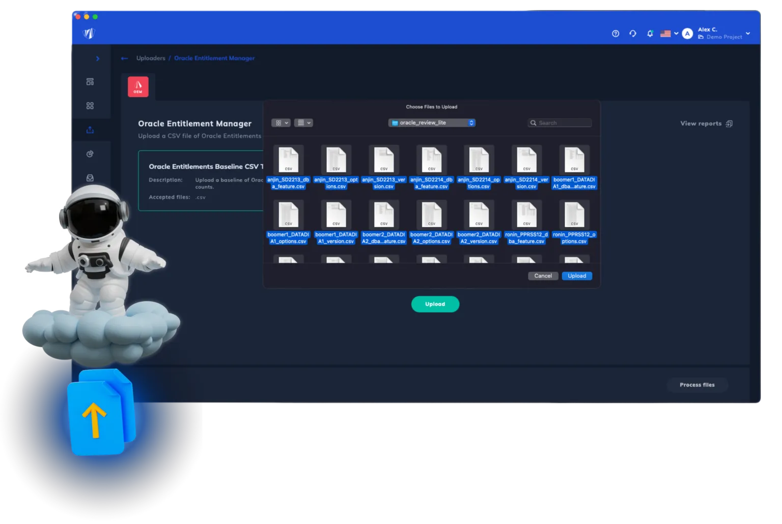 Oracle Entitlements Manager (OEM) by Licenseware is designed to help organizations gain control over Oracle licensing. It automates the analysis of Oracle license entitlements and reconciles them with actual deployment data to determine the Oracle Database Effective License Position (ELP). This ensures compliance, identifies risks, and surfaces cost optimization opportunities.