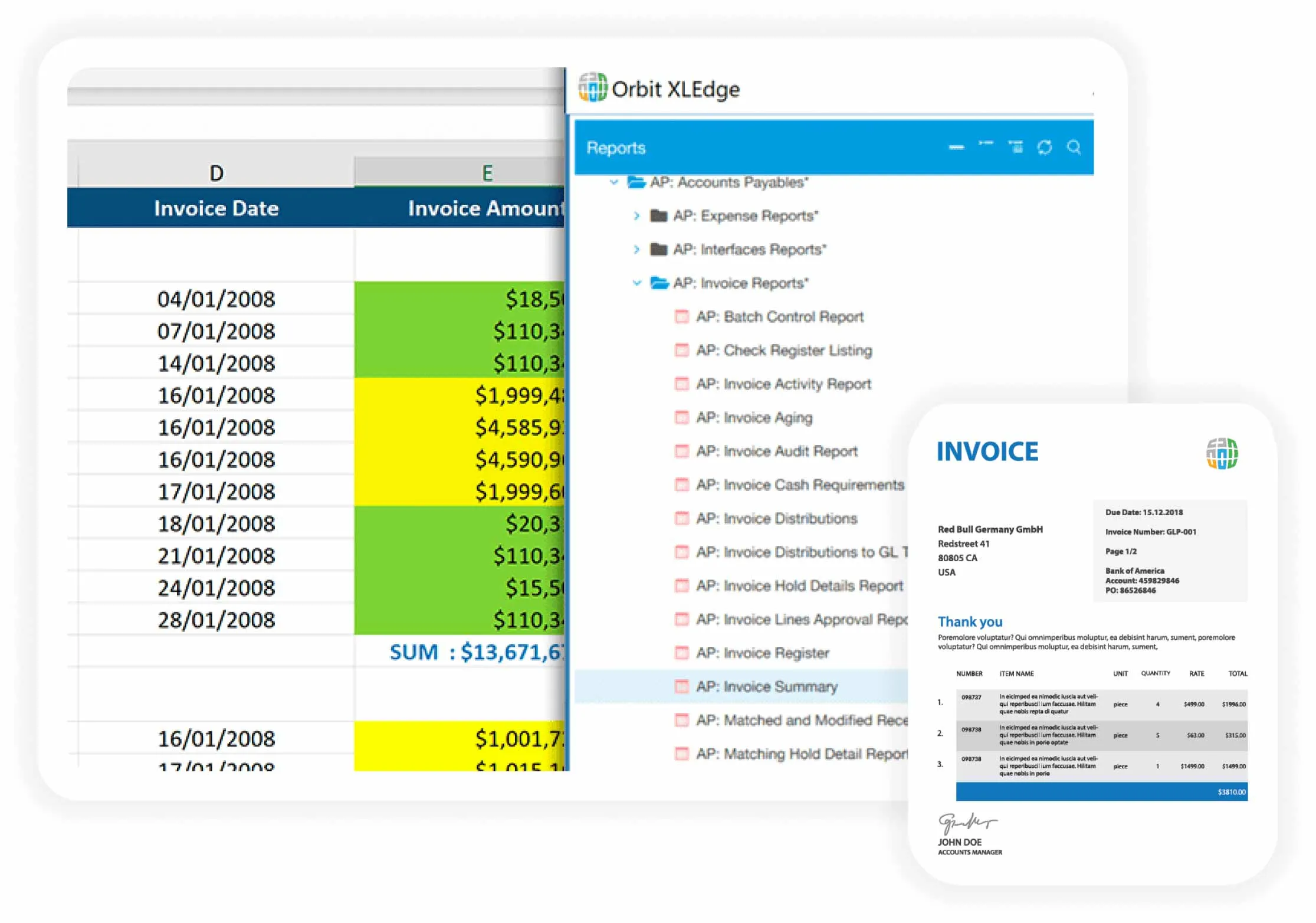 Orbit Excel Reporting pulls real-time ERP data into Excel, combining spreadsheet flexibility with secure, role-based data access.