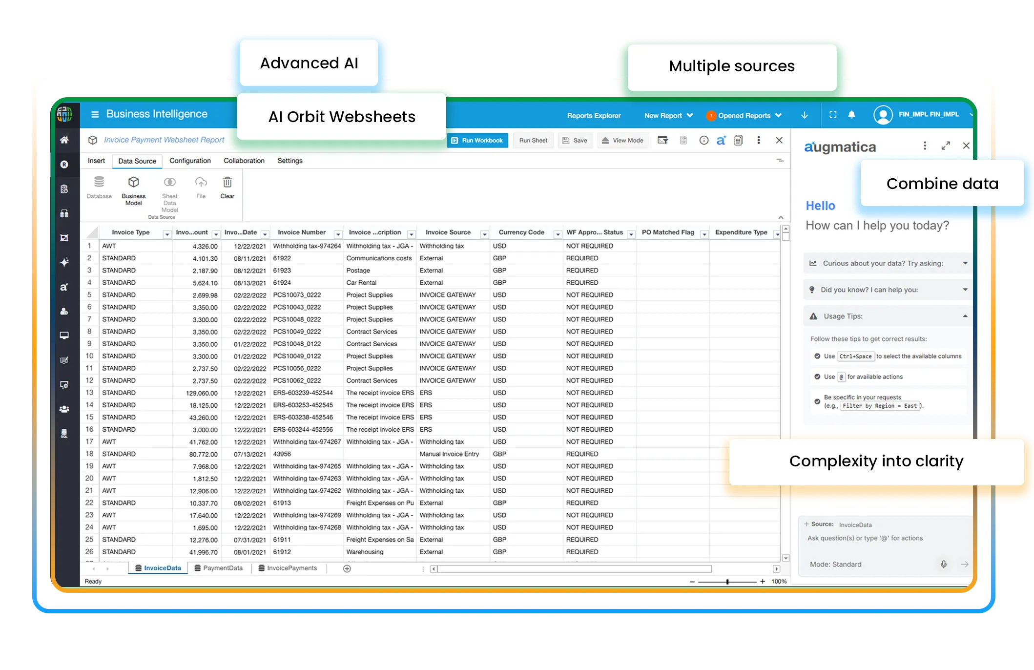 - Real-Time ERP Connectivity: Direct access to live data from Oracle Cloud ERP and other systems.