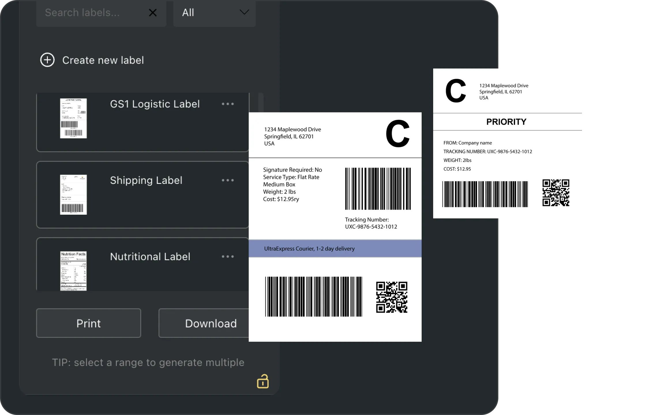 Label Design and Printing Create and print compliant barcode labels using templates or custom designs.
