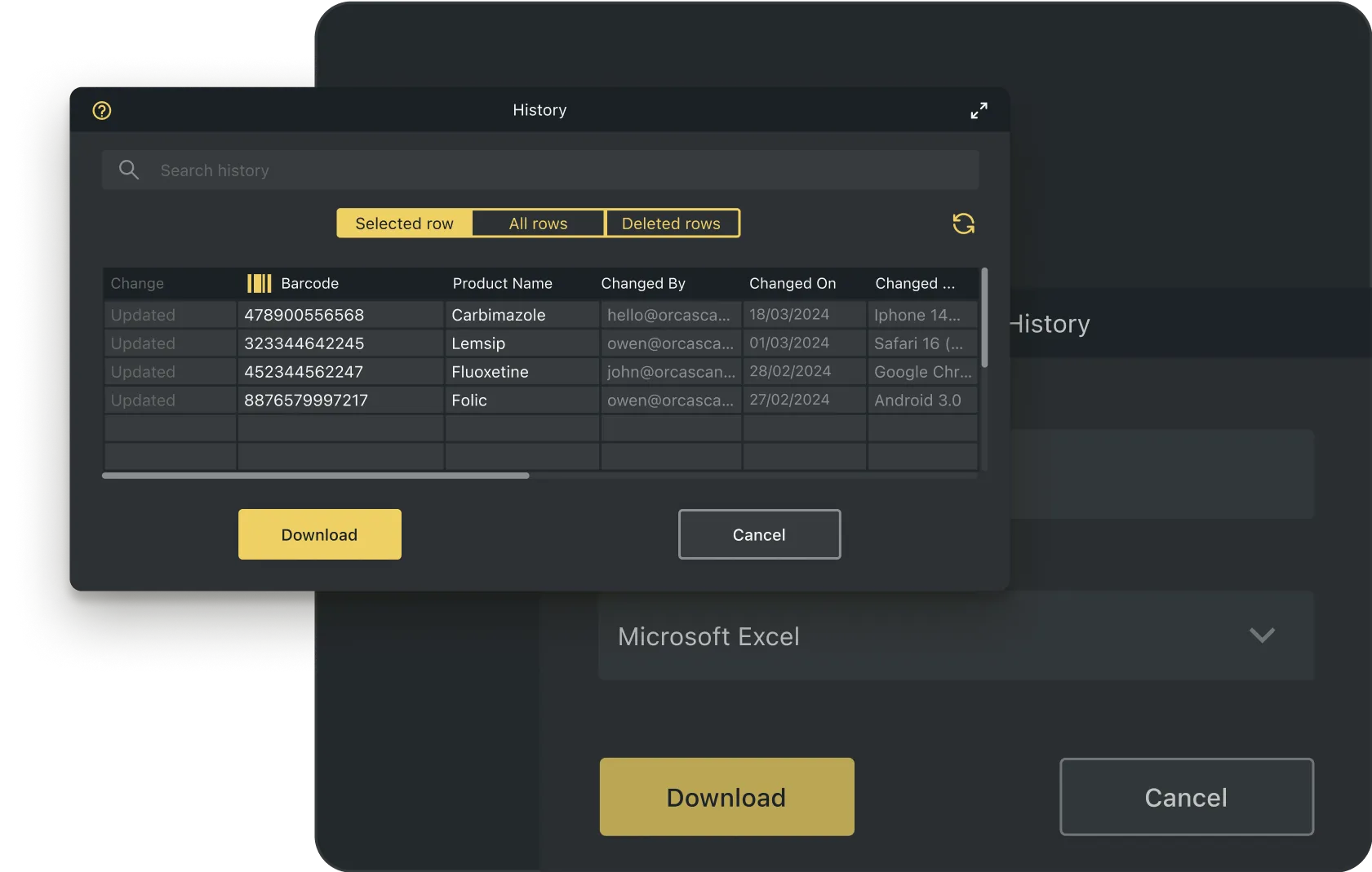 - Full history log with user, time, and location stamps