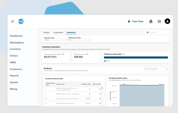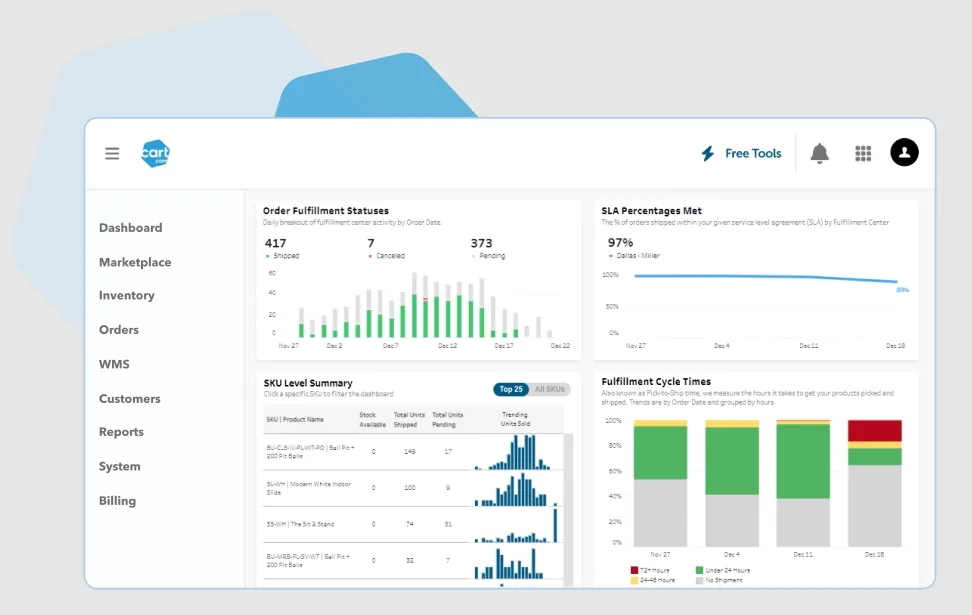 Cart.com’s Order Management System (OMS) is a scalable, cloud-based solution designed for omnichannel commerce. It centralizes and automates order processing across multiple sales channels, locations, and carriers. The system provides real-time visibility, intelligent routing, and post-purchase engagement tools, enabling businesses to deliver seamless customer experiences while optimizing logistics and inventory operations.