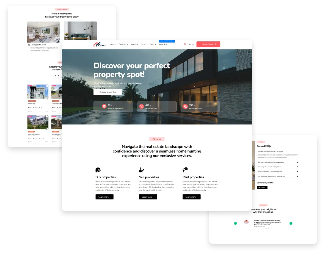 Orion Real Estate is a professionally designed Divi child theme tailored for real estate agencies, property managers, and rental businesses. It features clean layouts, advanced property listings, and intuitive navigation. With responsive design and easy customization via the Divi Builder, it’s perfect for showcasing properties and converting leads.