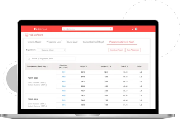 - Automated OBE Reporting: Generates OBE reports with a single click for efficient analysis.