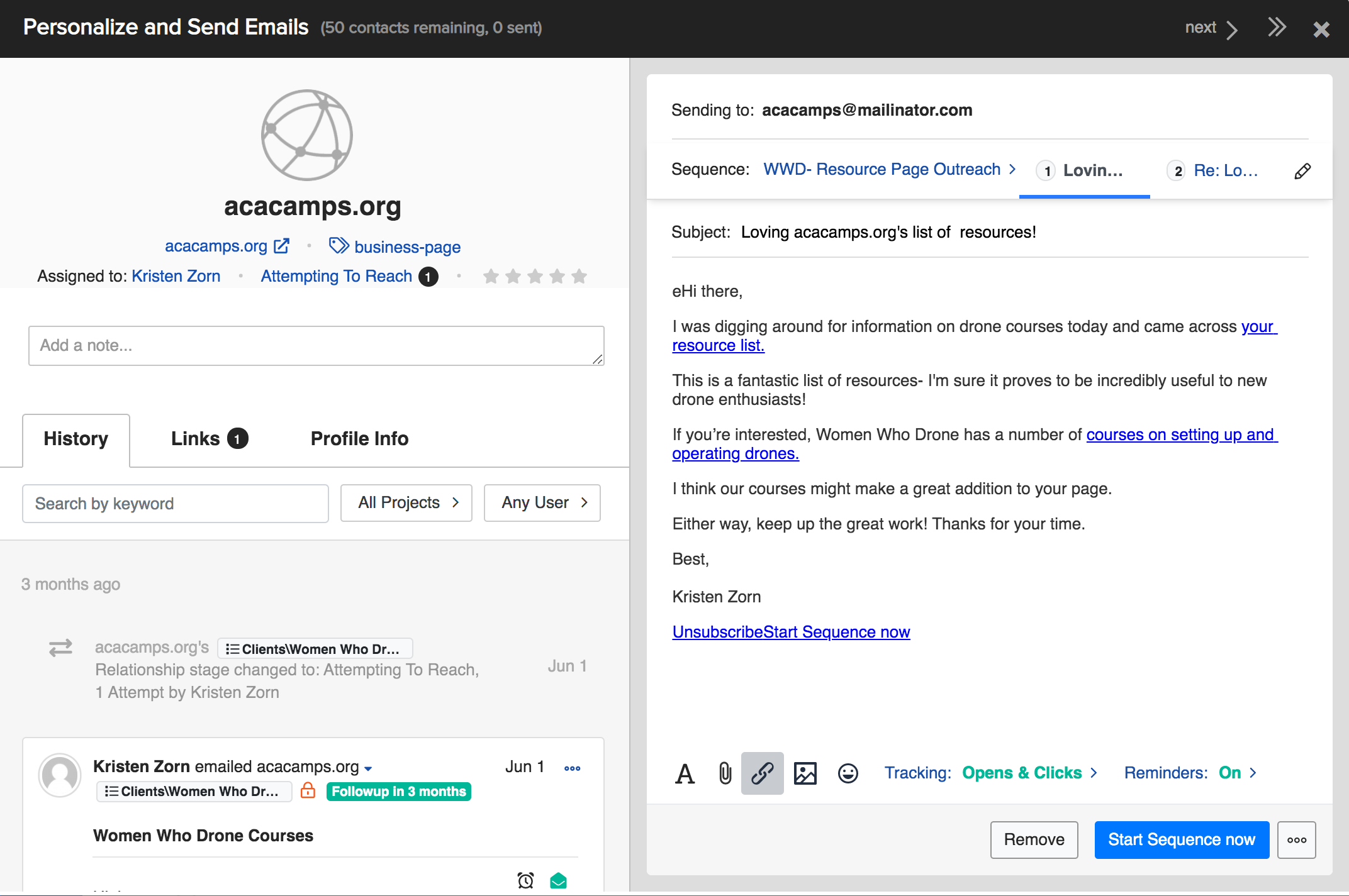 - Contact History Visibility: Prevent duplicate outreach and maintain relationship context.