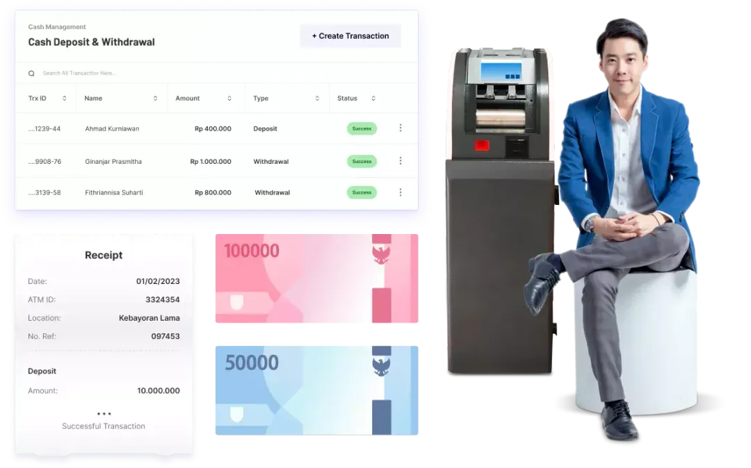 - Cash Deposit Machine (CDM): Provides a private, secure, and robust solution for cash deposits with real-time settlement and seamless dashboard integration.