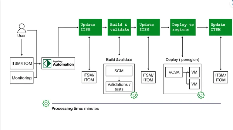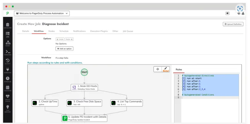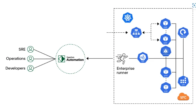 PagerDuty Runbook Automation, part of the PagerDuty Operations Cloud, provides a SaaS-based environment for authoring, managing and executing automated workflows that span across departments, technologies, and networks.