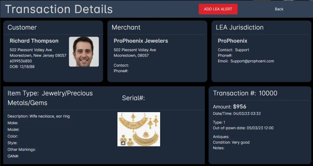 - Activity history tracking for individuals pawning valuables