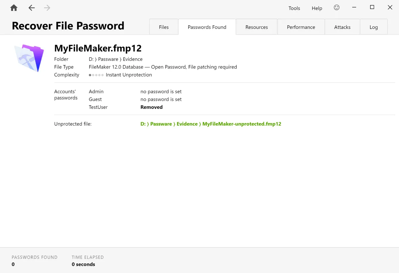 Passware FileMaker Key is a fast and easy-to-use solution to remove password protection from FileMaker files (.FP* and .FMP*).