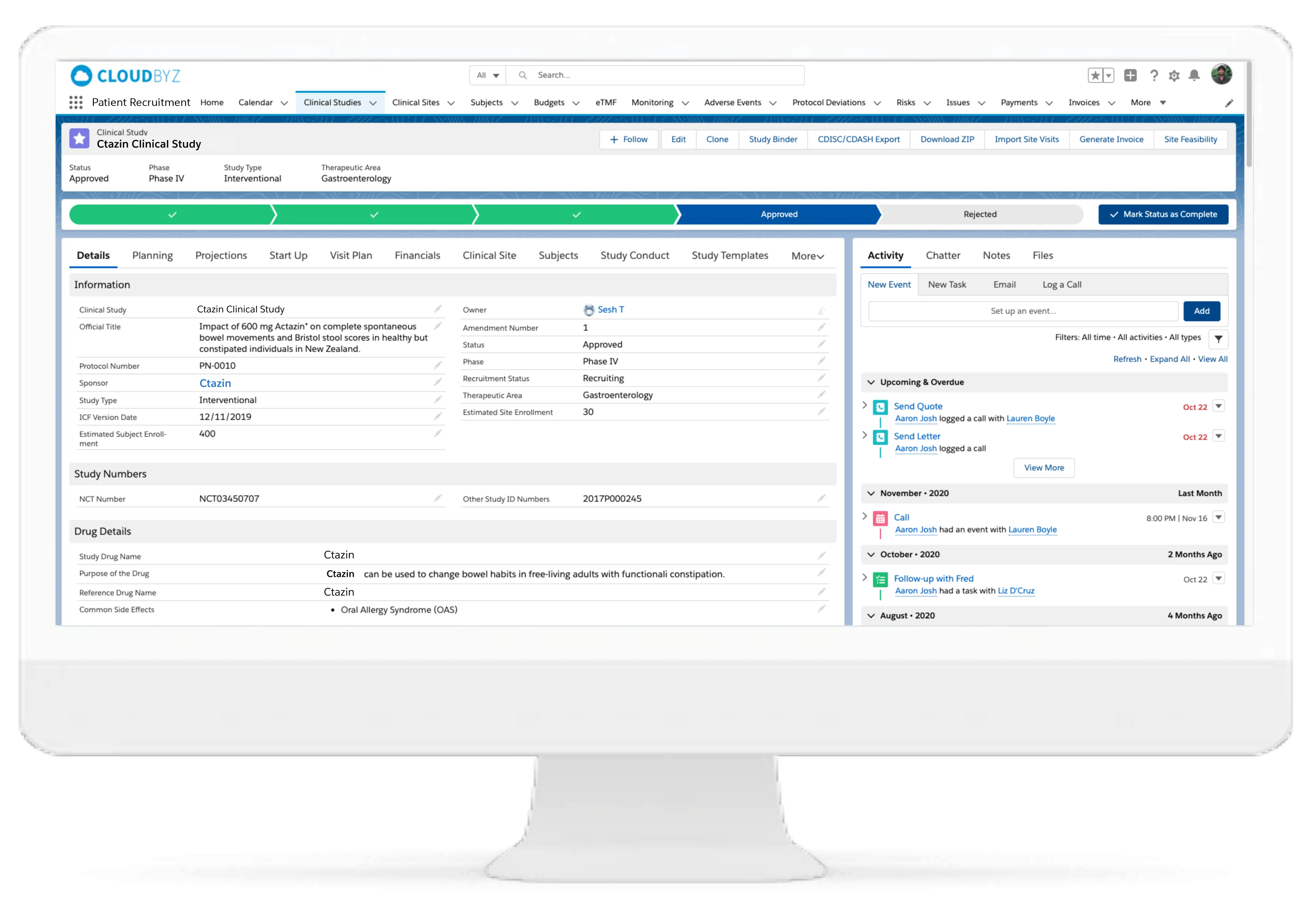 - Regulatory and Ethics Approvals: Manage IRB/IEC approvals and organize recruitment content by approval and expiry dates.