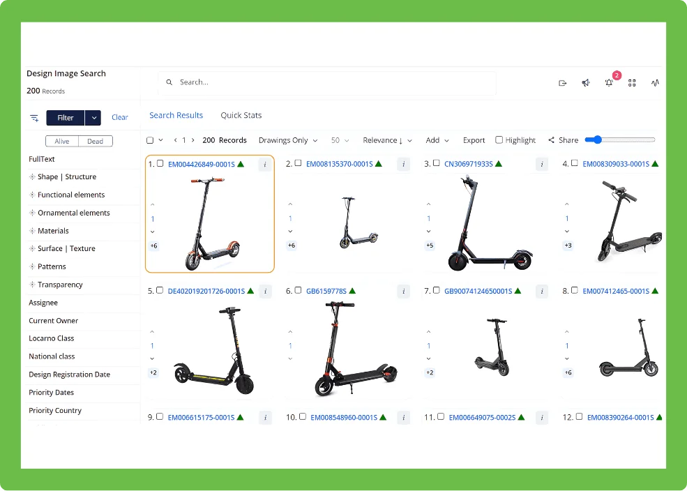 - Extensive Global Coverage: Aggregates more than 23M design records from 86+ authorities to support comprehensive prior art and FTO analysis.