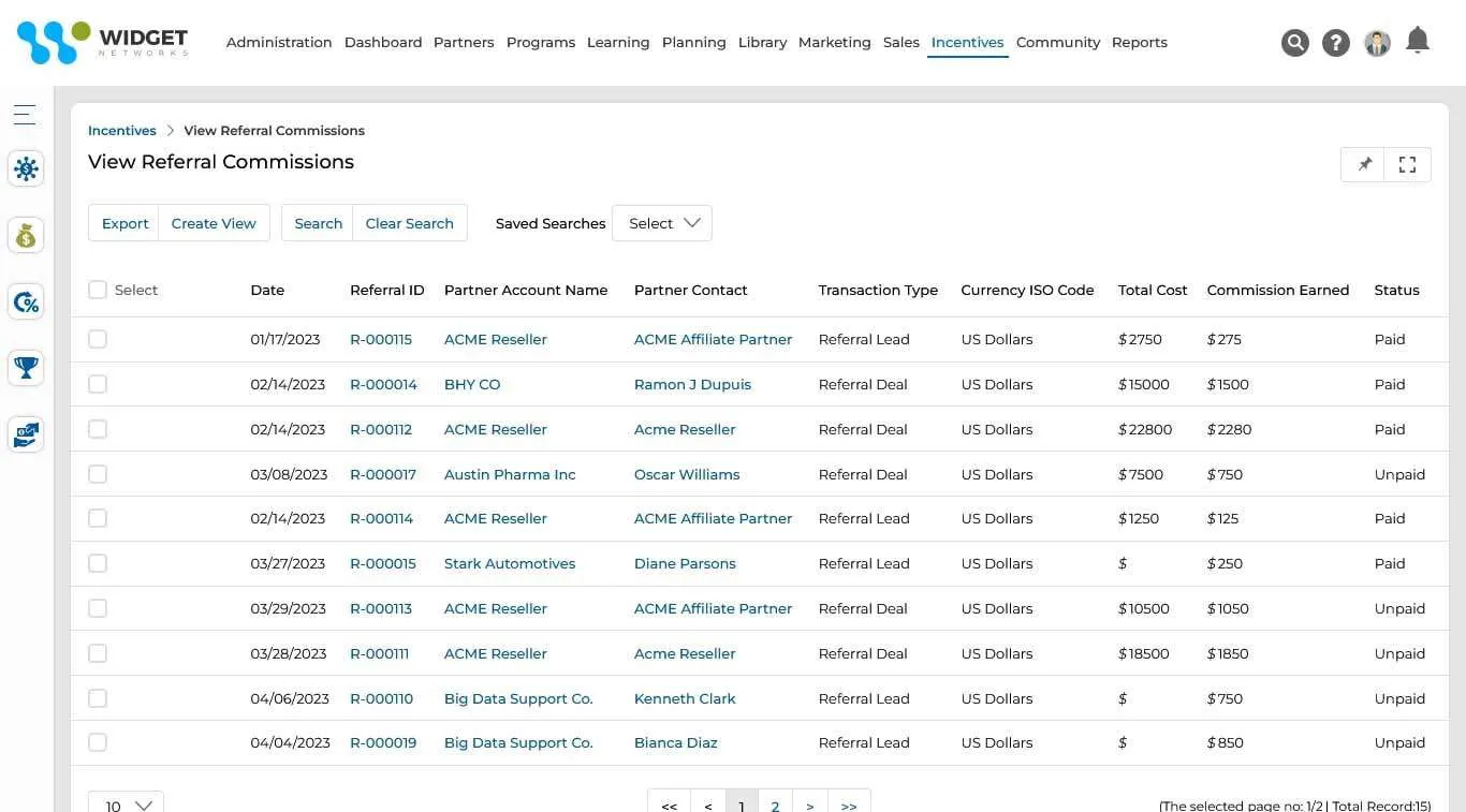 Referral Commissions Dashboard Provides a comprehensive overview of earned and paid commissions.