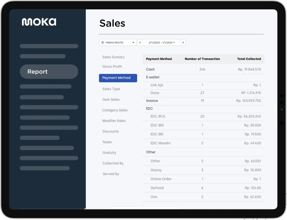 Moka POS enables offline businesses to accept digital payments from popular e-wallets like OVO, Gopay, Dana, and AliPay. With fast activation, no setup fees, and centralized reporting, merchants can streamline transactions and improve customer experience. The system supports QR code scanning and phone number entry for seamless checkout.