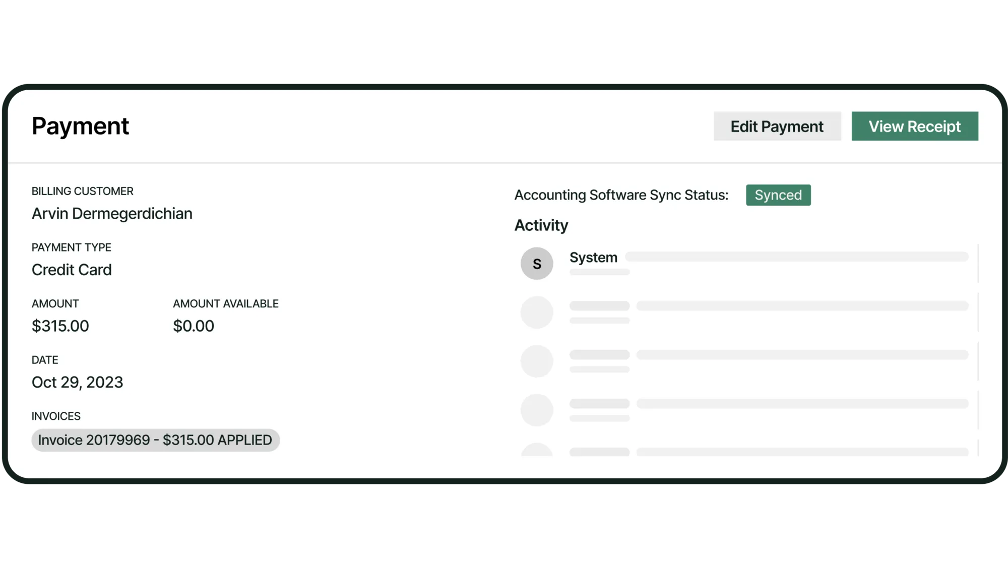Payments software enabling contractors to accept, track, and reconcile customer payments seamlessly.