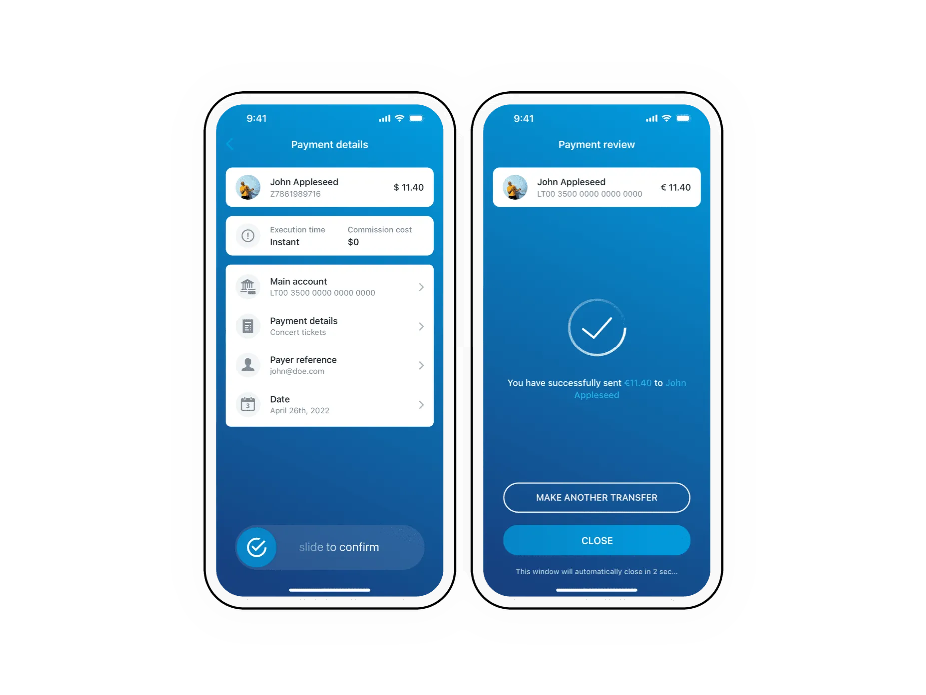 - Free SEPA and instant euro transfers
