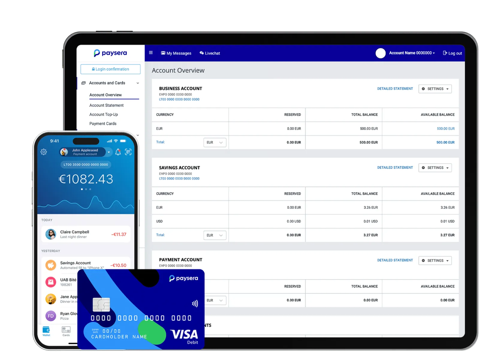 Paysera Account is a cloud-based digital banking and payment solution providing both private and business users with a multi-currency IBAN account. The platform enables fast and cost-effective international money transfers in over 30 currencies, including instant SEPA transfers in euros. Users can hold, exchange, and transfer funds globally, benefiting from competitive currency exchange rates. The service includes a contactless Visa payment card, which can be managed via a mobile app and used for online and in-store purchases, as well as ATM withdrawals. Paysera Account supports both personal and business profiles, with business accounts offering additional features such as multi-user access, spending limits, and integration with e-commerce and POS solutions. The account is free to open and manage, with no bundled or hidden fees, and all services are accessible online or via the mobile app.
