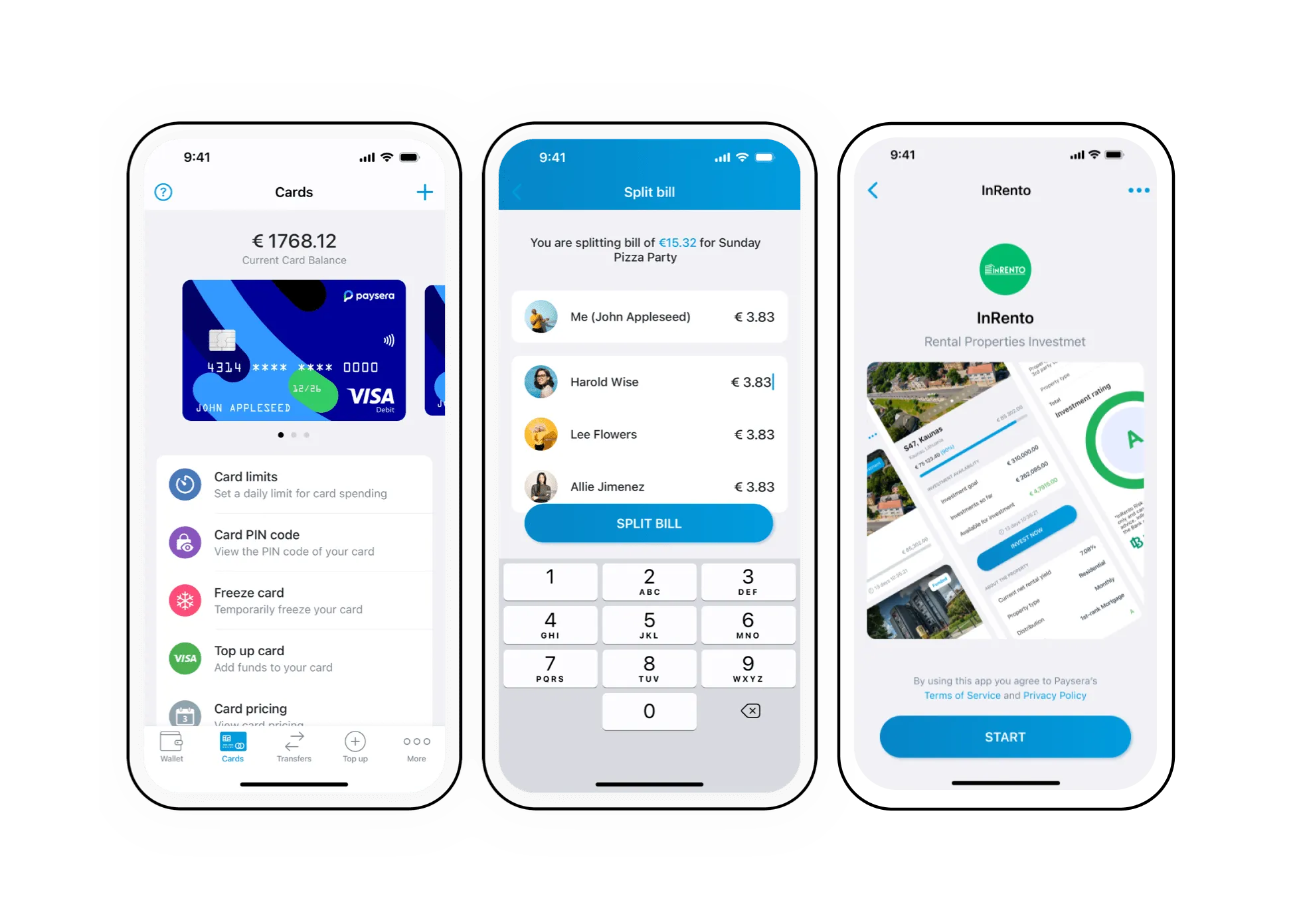 Contactless Payment Card Integrated Visa card for payments and withdrawals.