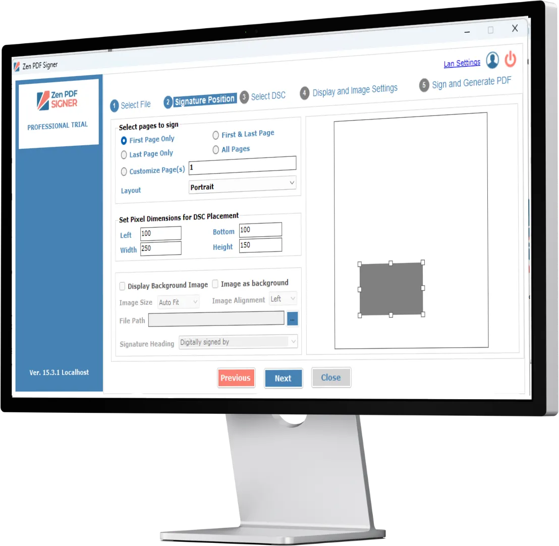 - Customizable signing location, reason, and city information.
