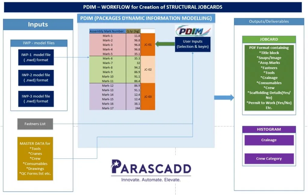 The software provides an integrated solution for creating and managing construction work packages using engineered 3D models (*.nwd). It enables seamless sequencing, resource estimation, and progress tracking for various disciplines involved in a construction project.