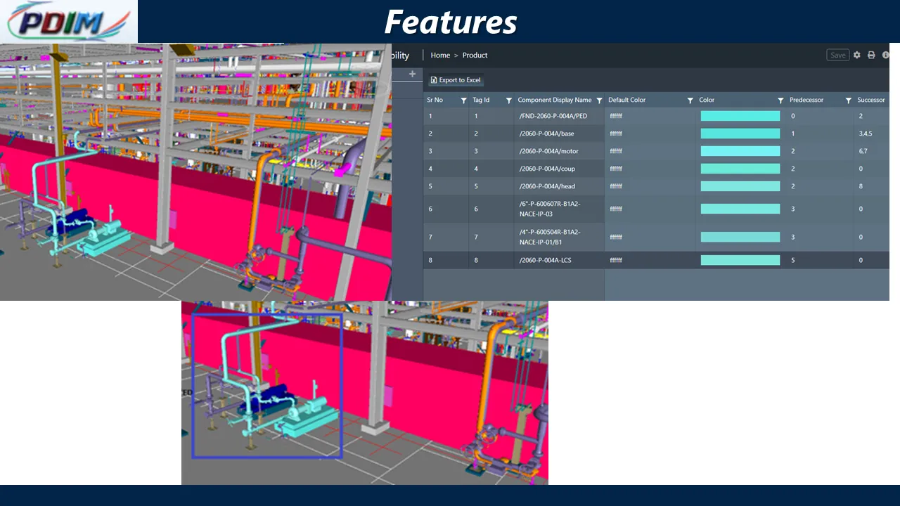 - AWP level & CWP/EWP/PWP level Progress monitoring & Construction progress Simulation in 3D model