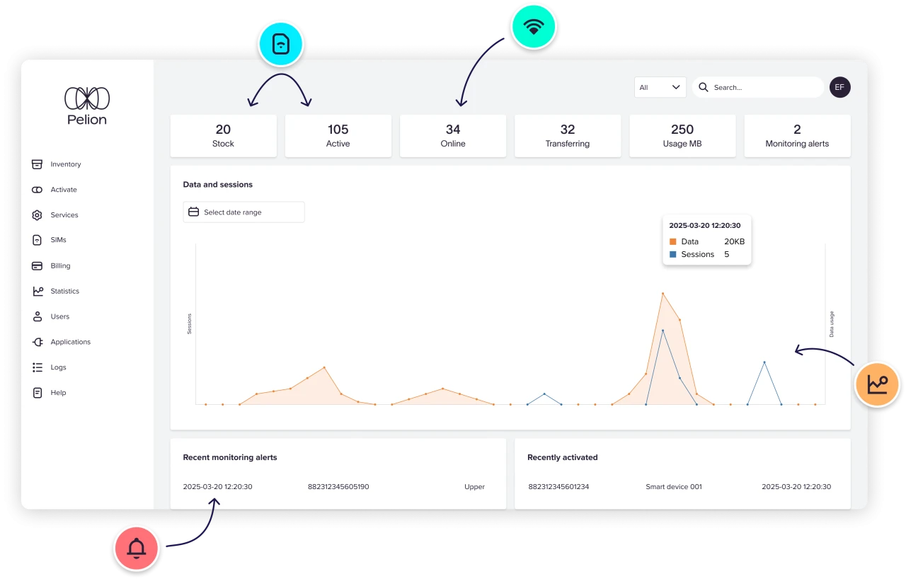 The Pelion portal provides a complete cellular IoT connectivity platform so you easily, activate, manage and monitor your entire SIM estate.
