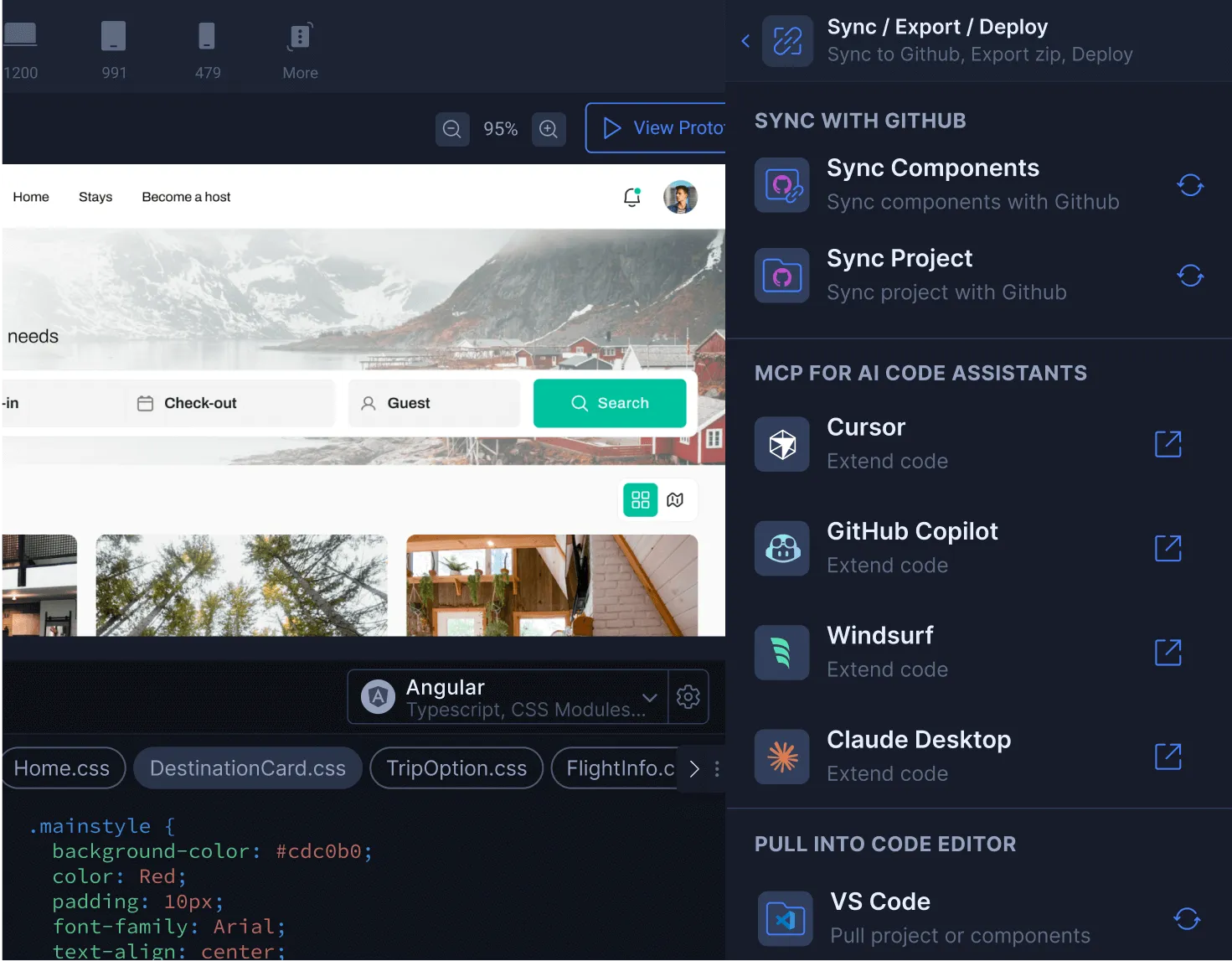 - Live Preview: Instantly view responsive prototypes rendered with actual Angular code.