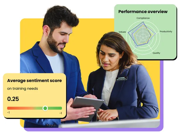 Business level performance & sentiment analysis Enable leaders to easily assess performance trends across key metric areas and business functions, address performance issues in a timely manner and reduce flight risks and disengagement.