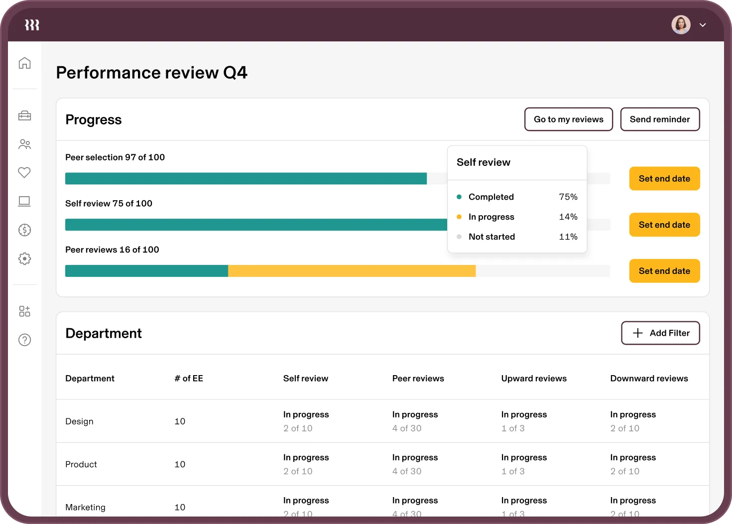 - Performance Reviews: Streamlines the review process with customizable templates and scheduling.