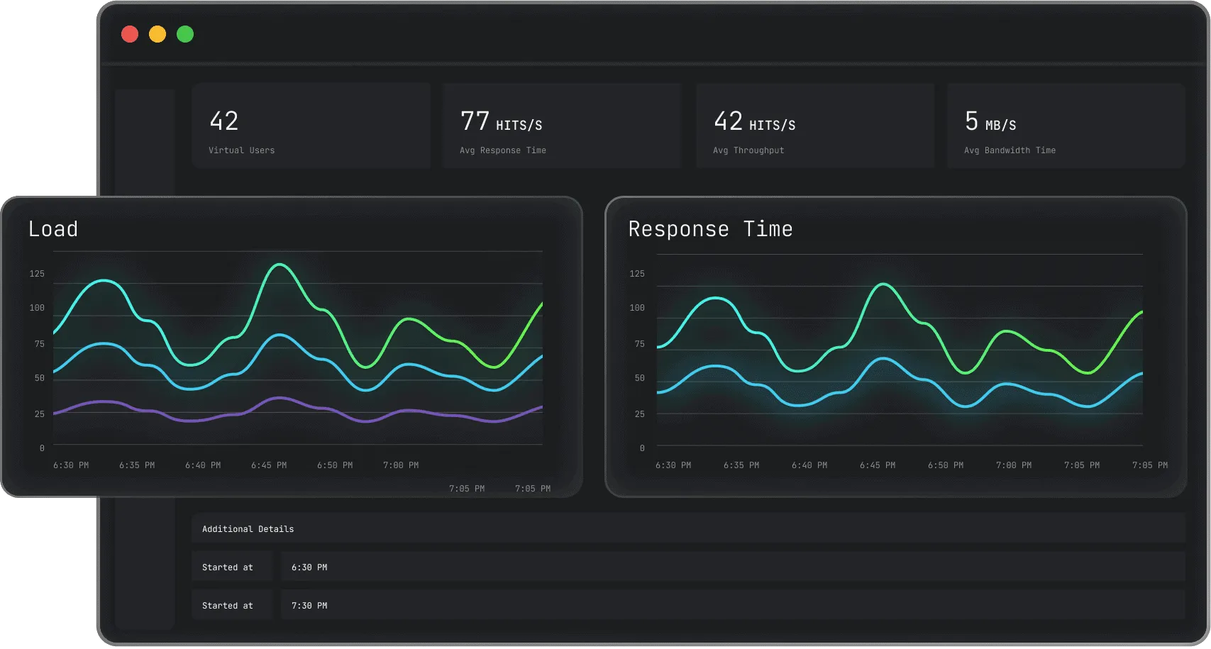 - Access KPIs such as load details, response times, and error rates.