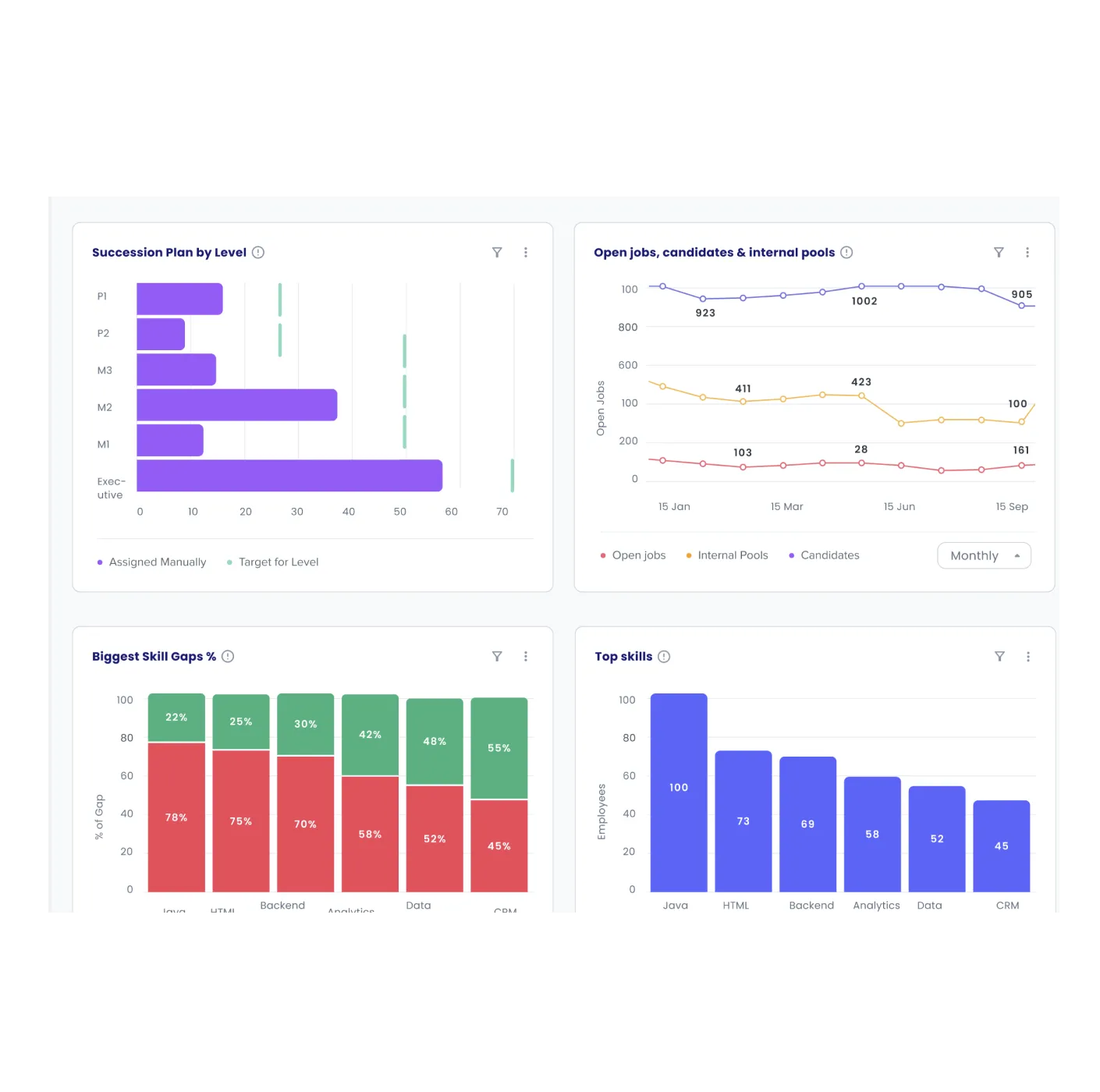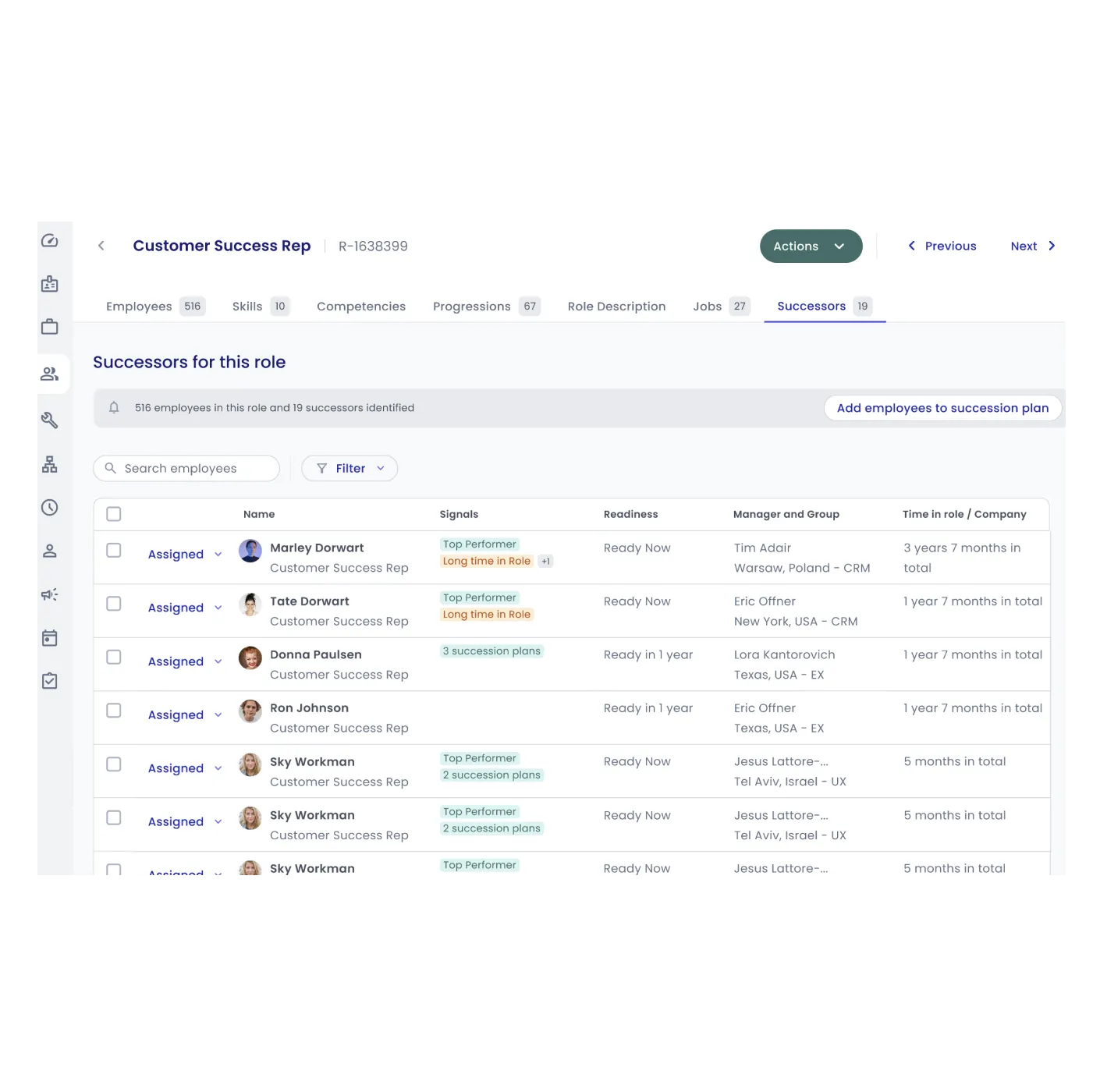 - Analyzing roles, skills, and succession data at an organizational level