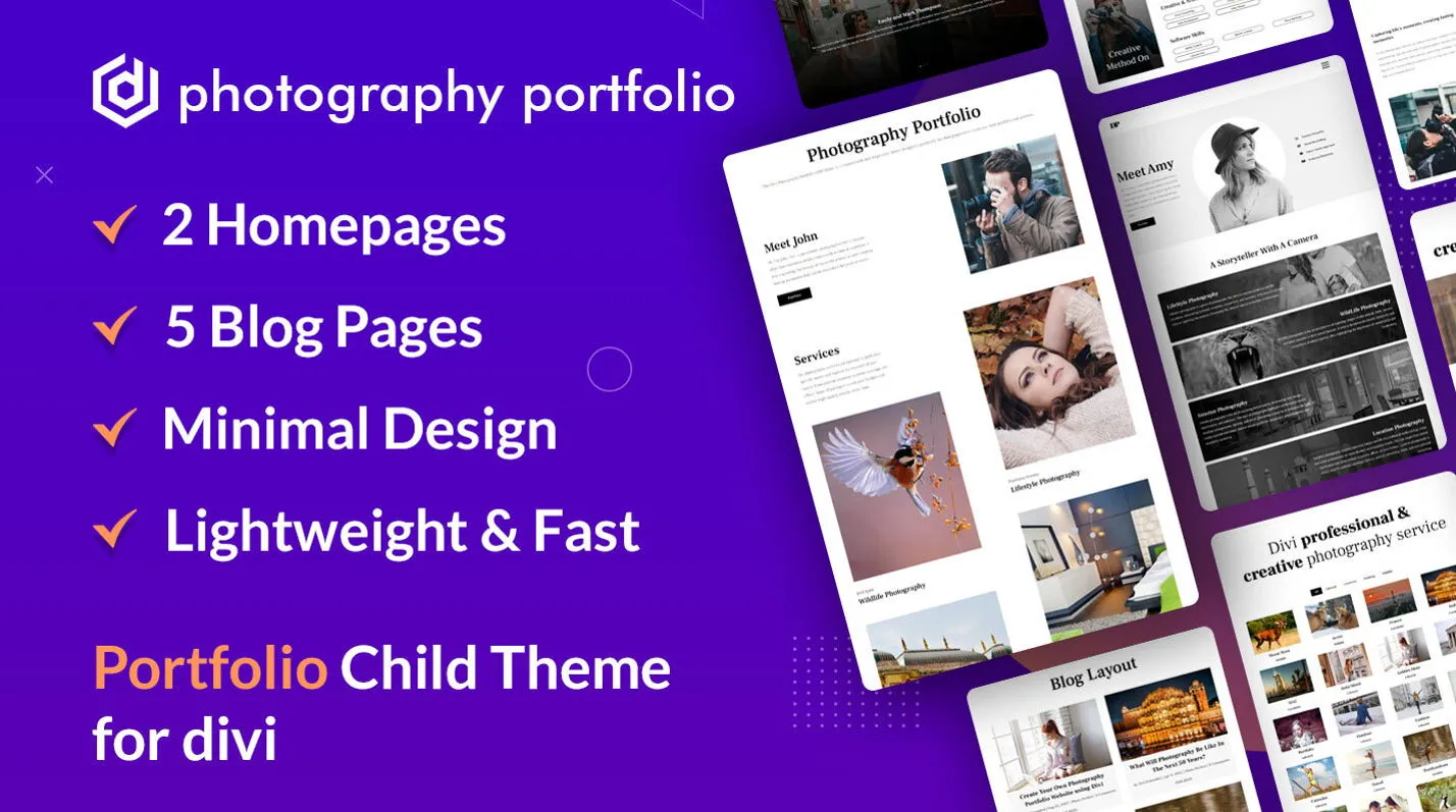 Photography and portfolio child theme for Divi